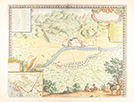 cobre con una vista del delta del Ebro con el norte situado en la parte superior. Bien coloreado.