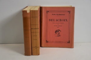 DELACROIX, peintre, graveur, écrivain par R. ESCHOLIER, PARIS, H. FLOURY 1926, 3 vol, 1798-1832, 1832-1848, 1848-1863, in 4°broché. Couv illustrée. Nombreuses reproductions. Une riche documentation.