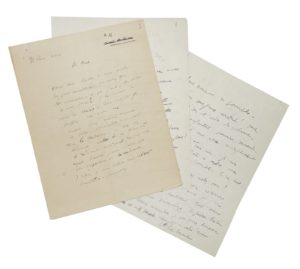 – Lettre autographe signée « Destouches ». Saint-Malo, [juillet 1937]. « Mon cher consul, encore moi ! JE MEDITE DE MONTER ENCORE UNE FOIS A L'ASSAUT DE S[AIN]T-HELIER [principal bourg de Jersey] mais avec une petite amie [sa future épouse Lucette Almanzor] et deux bicyclettes. J'aborderai de S[ain]t-Malo dans le début d'août. Mais les bicyclettes ? Que faut-il faire pour ne pas payer la douane anglaise ? Dois-je vous assommer avec un tel problème ? J'ai honte. Enfin vous êtes toujours si amical que [je] prends cette audace. Dites-moi juste si c'est idiot. Je viendrai alors franchement expier. Cette petite amie est fort convenable, fort aimable, fort discrète. RIEN QUI PUISSE ALARMER LES BOURRIQUES ANGLAISES... » (2 pp. in-folio).