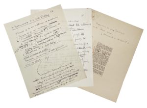 1. Manuscrit autographe. [1932]. Notes préparatoires à son Mémoire pour le Cours des Hautes Études (1 p. in-folio). Pour un passage traitant notamment des points suivants : « biologie de la race, le mythe de la race pure, le préjugé de races supérieures », mais aussi le système nerveux et l'alcoolisme. À rapprocher en partie des pp. 189 et 193 de l'édition donnée dans Semmelweis et autres écrits médicaux.