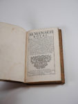ALMANACH royal pour l'an 1713. Paris, L.D'Houry. In- 8 mar. rouge, pièce de titre et tomaison sur le dos à nerfs fleudelisé et dor., cadre de fil. dor. avec fleur de lys d'angle dor., tr.dor. sur marbrure (Reiure de l'époque) Ff. blancs...