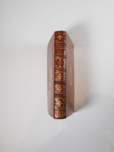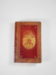 ALMANACH royal pour l'année 1727. Paris, la veuve.D'Houry. In- 8 mar. rouge titre dor. sur le dos à nerfs fleurdelisé et dor., dent. dor. encadrant les plats avec au centre armes frappées en or, doublé et garde de papier fantaisie, tr. dor.sur...