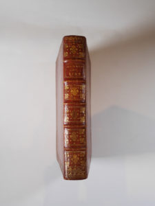 ALMANACH royal, année bissextile 1752. Paris, Le Breton. In- 8 mar. rouge titre dor. sur le dos à nerfs fleurdelisé et dor., cadre de dent. dor. sur les plats, doublé et gardes de papier fantaisie, tr. dor.(Reliure de l'époque) Ff. blancs...