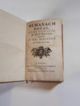 ALMANACH royal, année bissextile 1768. Paris, Le Breton. In- 8 mar. rouge titre dor. sur le dos orné et dor., cadre de fil. dor. sur les plats avec armes frappées en or au centre, doublé de moire verte, tr. dor.(Reliure de l'époque) Aux armes de...