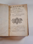 ALMANACH royal, année bissextile 1776. Paris, Le Breton. In- 8 veau brun, pièce de titre sur le dos à nerfs fleurdelisé et dor. (Reliure de l'époque usagée) Ex- libris gravé ancien et croix de Malte.