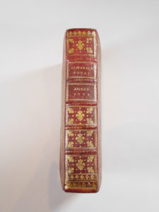 ALMANACH royal, année 1778 . Paris, Le Breton. In- 8 mar. rouge titre dor. sur le dos à nerfs fleurdelisé et dor., plaque de Dubuisson dor. sur les plats, doublé et gardes de moire or, tr. dor. (Reliure de l'époque) Ff. blancs intercalés pour...