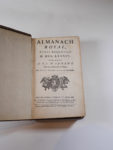 ALMANACH royal, année bissextile 1784. Paris, D'Houry. In- 8 mar. rouge titre dor. sur le dos à nerfs fleurdelisé et dor., plaque de Dubuisson dor. sur les plats avec armes frappées en or au centre, doublé et gardes de papier bleu, tr. dor....