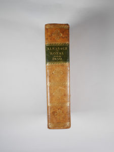 ALMANACH royal pour l' an 1830 présenté à Sa Majesté. Paris, Guyot et Scribe. In- 8 bas. fauve raciné, pièce de titre sur le dos fleurdelisé et dor. (Reliure de l'époque ) Etiquette du relieur Berthe Noël et ex- libris ancien.