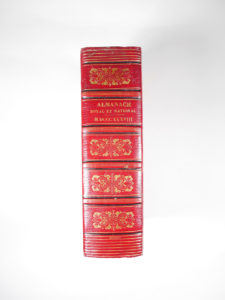 ALMANACH royal et national pour l' an 1838 présenté à Sa Majesté. Paris, Guyot et Scribe. In- 8 mar. rouge à long grain, titre dor. sur le dos à nerfs orné et dor. guirlande dor. encadrant les plats, tr. dor. (Gonnet J.)