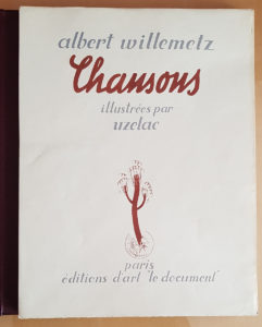 Albert WILLEMETZ Chansons Ill. par UZELAC, Editions d’Art « le document » Porte une dédicace datée 1939, exemplaire numéroté