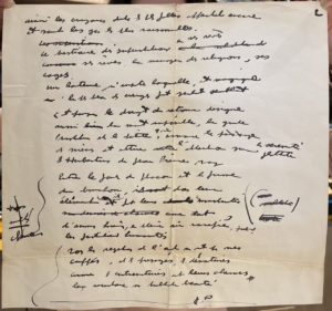 Jacques PRÉVERT (1900-1977). MANUSCRIT autographe signé " J.P. ", Dans la rue Visconti, avec dédicace " à Jean-Pierre Maury par amité Jacques Prévert Mai 1966) ; 1 page grand in-fol. et 1 page in-4. Poème en prose, dédié au sculpteur et...