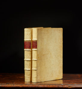 Musurgia universalis sive ard magna consoni et dissoni in X. libros digesta. Deux volumes plein vélin crème, dos à 4 nerfs, pièces de titre sur cuir bordeaux, lettrines or. Impr. Rome, Typographia Haeredum Francisci Corbelletti, 1650 Édition originale d'une des toutes premières «encyclopédies » de la musique. Impression en lettres romanes, une colonne de 52 lignes. Lettrines, notes en marge. Nombreuses gravures et partitions de musique. Tome I complet du frontispice et de 11 planches. Tome II complet du frontispice et de 10 planches, dont 4 dépliantes ou sur double page. Piqûres éparses, quelques rousseurs et décharges. Ex-libris du baron Horace de Landau.
