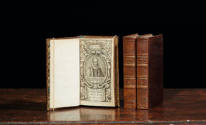 Les essais. Trois volumes in-12 plein maroquin marron foncé, dos à 5 nerfs éclaircis, trois tranches dorées. Bien complet du portrait de Montaigne en frontispice par Peter Clouwet. Chez Anthoine Michiels Amsterdam 1659. Nouvelle édition exactement purgée des défauts des précédentes, selon la vraie original et enrichie et augmentée d'une vie de l'auteur et d'une double table des matières. Une des premières éditions portatives. Longtemps attribuée à tort à Elzevier : gravé en pieds de dos de notre exemplaire, cette édition fut en réalité imprimée par François Foppens à Bruxelles.