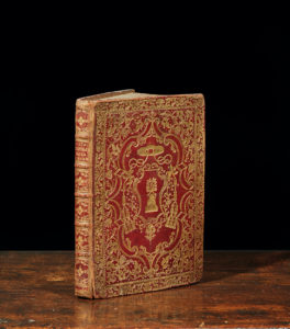 Ragguaglio della vita della serva di dio Rosa Venerini viterbese. In-4 plein maroquin rouge, à la fanfare : imposant décor de dorures sur chacun des plats, dos à 5 nerfs, orné de dorures, charnière fendue en queue sur 3cm, trois tranches dorées. Petits manques et trous de vers en coins et sur 1cm de long en bordure du premier plat. Rome, imprimerie Antonio de'Roffi, 1732. Edition originale. Complet du bois-gravé pleine page représentant Rosa Venerini. Quelques rousseurs.
