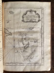 Description des débouquemens qui sont au nord de l'isle de Saint-Domingue. Reliure in-4 plein veau marbré, dos à 5 nerfs richement orné, trois tranches rouges. Une charnière restaurée, tache d'encre sur une tranche se poursuivant ne marges de plusieurs pages, les pages 125 et 126 avec un manque affectant le texte. Imprimerie du Departement de la Marine Versailles 1773. Seconde édition complétée. Bien complet des 34 cartes et plans, la plupart dépliants. Rare ouvrage rédigée par le premier hydrographe de la Marine Royale Française : BELLIN, figure incontournable de la cartographie au XVIIIème siècle. Dans cet ouvrage, il rassemble et publie les informations collectées par les officiers et ingénieurs de la Marine envoyés aux Antilles pour recenser les passages et passes de Saint Domingue, Bahamas, Floride, les Bermudes.