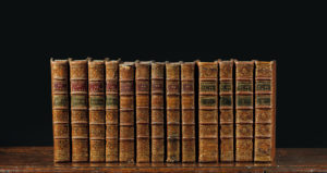 Ensemble complet des trois voyages. Premier voyage, Voyages entrepris pour faire des découvertes dans l'hémisphère méridional. Chez Saillant et Nyon et Panckoucke Hôtel de Thou 1774. Edition Originale française. Quatre volumes in-8 plein veau marbré, dos à 5 nerfs ornés de fleurons et caissons ornés, pièces de titre en maroquin rouge et tomaisons maroquin noir, tranches jaspées. Complet des 52 planches et cartes. Très frais intérieurement, petites mouillures très pales sur quelques pages. Reliure avec petits accrocs minimes et frottements, restaurations de quelques charnières. Deuxième voyage Voyages dans l'hémisphère austral et autour du monde, fait sur les vaisseaux de Roi, l'Aventure et la Résolution. Hôtel de Thou 1778 Edition originale française. Cinq volumes in-8 plein veau marbré de l'époque, dos à 5 nerfs ornés de caisson et fleurons dorés, pièces de titre en maroquin rouge et tomaisons en maroquin fauve, tranches rouges. Bien complet du portrait en frontispice et des 67 planches toutes tirées sur papier fort et de très belles qualités. Ensemble en bel état, coiffe du tome 1 avec manque, petits manques et frottements, mouillures au tome IV sur 6 planches et une dizaine de feuillets. Sinon globalement l'intérieur est resté frais. Troisième voyage. Voyage à l'Océan Pacifique. Paris Hôtel de Thou 1785. Edition originale française. Quatre volumes in-8 plein veau marbré, dos à 5 nerfs fleurons ornés, pièces de titre et tomaisons sur maroquin noir, trois tranches jaspées. Complet des 88 cartes et planches dont celle illustrant la mort de Cook. Petits frottements, charnières fragiles sur 2 volumes, petites mouillures pâles sur quelques feuillets et planches. Ensemble complet de des trois voyages de Cook dans l'Océan Pacifique, premier européen à avoir débarqué en Australie, Nouvelle Calédonie, Iles sandwich et Hawaï et premier européen à avoir effectué le tour de l'Antarctique et à avoir cartographié Terre-Neuve et la Nouvelle-Zélande. Ensemble harmonieux des 13 volumes ce qui est rare.
