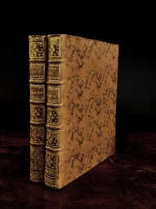 Etat civil, politique et commerçant du Bengale ou l'histoire des conquêtes et de l'Administration de la Compagnie Anglaise dans ce pays. Deux volumes reliés in-8 plein veau marbré, dos à 5 nerfs et fleurons, tranches marbrées. Bien complet des deux frontispices et de la carte dépliante. Chez Gosse La haye 1775. Edition originale française (traduction de BOTS, juge de la cour du Maire de Calcutta).