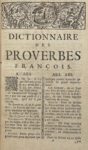 [DE BACKER (Georges)] — Dictionnaire des proverbes françois, avec l'explication de leurs significations, et une partie de leur origine.
