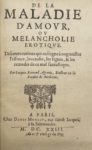 L'édition originale de cet ouvrage a vu le jour à Toulouse en 1610 sous le titre de Traicté de l'essence et guérison de l'amour, ou de la melancholie erotique, et a été réimprimée dans la même ville en 1612. La présente édition parisienne, remaniée et notablement augmentée, ajoute à l'ouvrage une dimension polémique, suscitée par la condamnation de la première édition par l'Inquisition de Toulouse en 1620.
