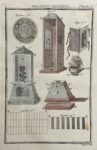 Ce bel ouvrage renferme 73 planches dépliantes, quasiment toutes rehaussées d'un joli coloris de l'époque, 4 tableaux hors texte et 4 listes de prix des appareils et dispositifs nécessaires aux expériences décrites, qui étaient commercialisés par l'auteur.