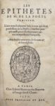 LA PORTE (Maurice de) — Les Épithètes. Livre non seulement utile à ceux qui font profession de la poësie, mais fort propre aussi pour illustrer toute autre composition françoise. Avec briesves annotations sur les noms & dictions difficiles.