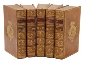 Paris, Didot, Musier fils, de Hansy, Panckoucke, 1764. 5 volumes petit in-8, veau blond, triple filet doré, armoiries au centre, dos orné, dentelle intérieure, tranches dorées (Reliure de l'époque).Édition originale du « premier livre où la science de la nature ait été vraiment mise à la portée de tout le monde » (Larousse).