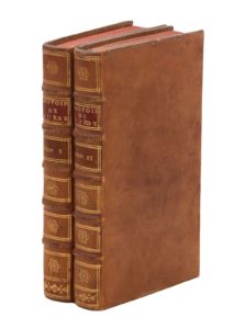 1731. 2 volumes in-12, veau fauve, dos orné, tranches rouges (Reliure de l'époque).Édition originale du premier ouvrage historique de Voltaire.