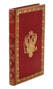 Précieux exemplaire imprimé sur papier vélin dans une reliure en maroquin rouge aux armes de l’empereur Alexandre Ier de Russie (1777-1825), l'instigateur de la Sainte-Alliance et l'auteur de son manifeste, publié à Saint-Pétersbourg à Noël 1815 et reproduit à la fin du présent ouvrage.