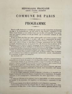 Paris, Imprimerie nationale, avril 1871. 2 ff. anopisthographes in-4 (265 x 205 mm) sur papier bible. Édition originale de la « Déclaration de la Commune de Paris au peuple français » du 19 avril 1871 sous forme de feuille volante.