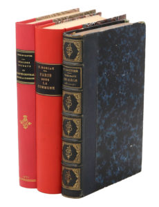 MORIAC (Édouard). Paris sous la Commune, 18 mars au 28 mai. Paris, Dentu, 1871. In-12, bradel demi-percaline rouge, couverture (Reliure moderne). Édition originale, précédée des Commentaires d'un blessé par Henry de Pène. Quelques rousseurs, réparations à la couverture. Le Quillec, n°3265.