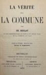 BESLAY (Charles). La Vérité sur la Commune. Bruxelles, Henri Kistemaeckers, 1878. In-12, demi-basane verte, dos lisse fileté, tranches mouchetées (Reliure de l'époque). Seconde édition, revue et considérablement augmentée, du testament politique de Charles Beslay, socialiste proche de Proudhon et doyen de la Commune, où il fut nommé commissaire délégué auprès de la Banque de France. Coiffe supérieure manquante, claires rousseurs. Le Quillec, n°444.
