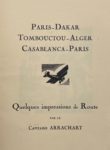On joint : ARRACHART (Ludovic) et Henri LEMAÎTRE. Paris-Dakar, Tombouctou-Alger, Casablanca-Paris. Quelques impressions de route. S.l.n.n., 1925. Petit in-4 de [24] pp., broché. Plaquette illustrée d'une carte et de 13 bois originaux de Jacques Boullaire.