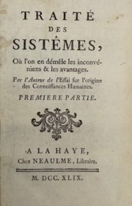 Dans le Traité des systèmes, Condillac développe les principes méthodologiques de l'Essai sur l'origine des connaissances humaines, son premier ouvrage, publié en 1746.
