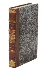 Paris, Brière, 1821. 21 volumes in-8 (sur 22), demi-veau fauve, dos orné, tranches marbrées (Reliure de l'époque).Première édition collective, dont le tome xxi contient l'édition originale du Neveu de Rameau, établie sur la copie du manuscrit autographe remis à l'éditeur par la fille de Diderot, et celle du Voyage de Hollande.