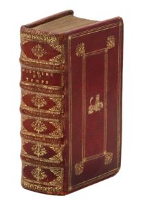 Jolie reliure en maroquin rouge à la Du Seuil, ornée d'un fer emblématique ou peut-être héraldique représentant un lion couronné assis tenant un orbe sous une patte.