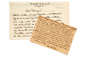BARTÓK Béla (1881 - 1945)2 L.A.S., 7 et 18 février 1935, à Emil TELMÁNYI ; carte postale, adresse au verso, et 1 page et demie in-8 (trous de classeur) ; en hongrois. Au sujet de sa 2e Rhapsodie pour violon. [Le violoniste et chef d'orchestre...
