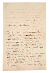BERLIOZ Hector (1803 - 1869)L.A.S. «H. Berlioz», 6 septembre 1854, à Amédée MÉREAUX ; 2 pages in-8. Belle lettre sur la musique. Il le remercie pour son savant et bienveillant article [dans le Journal de Rouen, sur l'échec de Berlioz à l'Institut] : «Vous me comblez. Combien de gens disent ce que vous avez dit dans votre feuilleton sur l'Institut, qui auraient déjà dû l'écrire mais s'en gardent bien. Il ne faut pas se chagriner pour cela plus que pour aucune autre absurdité ; la musique, chez nous, est un art toléré ; on la bouscule, on la frappe, on lui crache au visage, et on prétend la bien traiter... Heureusement nous sommes un certain nombre de musiciens résignés, qui l'aimons d'autant plus qu'elle est plus malheureuse, et qui lui portons un respect d'autant plus profond qu'elle est plus outragée». Puis il fait allusion à L'Enfance du Christ dont Méreaux prépare la partition piano-chant : «Où en est notre Songe ?». Il part pour un petit voyage dans le Midi. «On attend ma partition à Weimar pour la traduction allemande ; celle de l'Arrivée à Saïs est déjà terminée»... Correspondance, t. VIII, p. 395 (n° 1787bis).