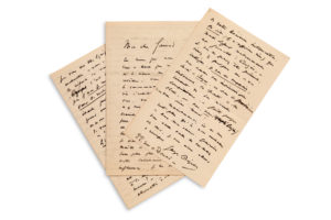 BIZET Georges (1838 - 1875)L.A.S. «Georges Bizet», [Paris début octobre 1872], à Charles GOUNOD ; 9 pages petit in-8. Extraordinaire et longue lettre musicale de Bizet à son maître Gounod, notamment sur Roméo et Juliette dont Bizet surveillait les répétitions à l'Opéra-Comique, pendant l'exil de Gounod en Angleterre. «Les liens qui nous unissent sont de ceux que ni l'absence ni le silence ne peuvent relâcher. Vous avez été le commencement de ma vie d'artiste. Je résulte de vous. Vous êtes la cause, et je suis la conséquence. J'ai craint d'être absorbé, je puis vous l'avouer maintenant et vous avez pu remarquer les eff ets de cette inquiétude. Je crois être aujourd'hui plus maître de ma main, et je ne sens plus que les bienfaits de votre salutaire et décisive infl uence. [...] Je ne sais, mon cher Gounod, quelles sont les causes qui vous ont éloigné de nous !... Nous pensons souvent à vous... Nous vous regrettons et nous vous aimons toujours. - Nous avions bien besoin de vous ici [...] Le moment est venu d'organiser à Paris de grandes masses chorales. Vous seul aviez l'autorité nécessaire pour mener cette œuvre à bonne fi n... que d'années encore pour que l'un de nous se sente assez robuste pour initier nos Parisiens aux écrasantes beautés de Bach et de Haendel. Vous nous manquez... et nous ne nous consolons de votre absence qu'en espérant votre retour lorsque l'heure de Polyeucte sera venue». Quant à Roméo et Juliette, il a bien des choses à demander à Gounod, principalement sur la question des coupures à faire, dont il dresse la liste, acte par acte. Pour le fi nal, il compte suivre «la version du Théâtre Lyrique». Il s'interroge pour l'Épithalame : «Est-il vrai que vous consentiez à la suppression de cet excellent morceau ?»... Etc. Enfi n, il presse Gounod de soutenir REYER plutôt que François Bazin, pour succéder à Carafa à l'Institut : «un poëte ferait mieux l'aff aire qu'un rhêteur sans style, sans érudition, sans conviction, sans idée, sans quoi que ce soit qui ressemble de près ou de loin à une qualité artistique»...