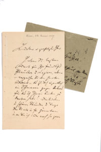 BRAHMS Johannes (1833 - 1897)L.A.S. «J. Brahms», [Wiegen in Wien 26 janvier 1889], à Edward. SPEYER à Frankfurt am Main ; 2 pages in-8, enveloppe (petits trous marginaux) ; en allemand. [Edward SPEYER (1839-1934) était le mari d'Antonia Kuff...