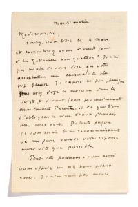 CHAUSSON Ernest (1855 - 1899)L.A.S., mardi matin [février 1899], à Mlle Cécile BOUTET DE MONVEL ; 1 page et demie in-8. Au sujet de son Quatuor pour piano et cordes op.30. «Seriez-vous libre le 4 mars et consentiriez-vous à venir jouer à la Nationale mon quatuor ? [...] vous avez déjà ce morceau dans les doigts, le devant jouer prochainement aux Concerts Parent [...] Peut-être pourrons-nous aussi vous off rir un n° pour piano seul. Je ne suis pas encore certain. Nous avons comité ce soir et nous allons voir ce qui nous sera possible de faire»...