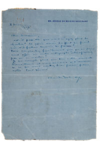 DEBUSSY Claude (1862 - 1918)L.A.S. «Claude Debussy», 8 mai 1917, à M. Tronquin ; demi-page in-12 à son adresse, adresse au verso. À son marchand de charbon : «Est-il possible que vous n'ayez plus de charbon ? Et après avoir souff ert de froid...