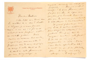 FAURÉ Gabriel (1845 - 1924)L.A.S. «Gabriel Fauré», Lugano [août 1913], à Joseph de MARLIAVE ; 3 pages in-8, vignette et en-tête du Grand Hôtel Métropole et Monopole (petites fentes au pli). Il est «dans la moiteur de ce chaud climat de...