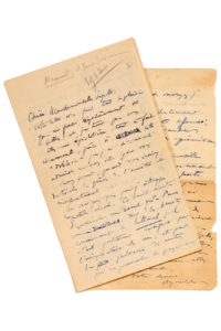 au talent d'épistolière de son amie, évoque la vie à Monaco, la fi èvre du jeu.... «Le jongleur de Notre-Dame est un petit ouvrage écrit vite et avec toute la sincérité dont est capable un artiste merveilleux qui n'est plus depuis longtemps sincère avec lui-même. La psychologie de Massenet est une chose compliquée ; moi seul la connais bien pour avoir vécu dans une intimité de chaque jour avec lui pendant des années et pour l'avoir vu travailler. - Cette œuvre serait tout à fait charmante si, avec le talent même qu'elle renferme, elle avait été écrite il y a 15 ans, quand les idées étaient encore en pleine fl oraison. Alors, point n'eût été besoin de suppléer à ce qui manque de ce côté par un peu d'aff ectation sentimentale par des insistances fatigantes sur des petites choses, par un abus des nuances qui énerve etc. Mais tel qu'il est, l'ouvrage est agréable, pas banal, et orchestré d'une manière prodigieuse ; personne, sachez-le, même pas Wagner dans les Maîtres chanteurs ! n'a aussi bien orchestré que Massenet orchestre maintenant ; Grisélidis est superbe à ce point de vue ; sous ce rapport là, il a fait des progrès inouïs et qui semblaient impossibles ; et l'admirable instrumentation de St Saëns est bien pâle, malgré sa saveur, à côté de celle de Massenet [...] Pour ma part, j'instrumenterai toujours plus classiquement que Massenet, et par là je me rapprocherai davantage de cet artiste incomparable que j'admire tant (le seul, peut-être que j'admire pleinement dans quelques un de ses ouvrages) et qui m'a si fortement et si piètrement off ensé»... On joint une L.A.S. à un ami (3 p. in-8, à en-tête du Grand Hôtel de Toulon), ironisant sur un «jeune écrivain»...