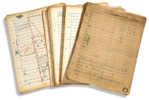 HAHN Reynaldo (1874 - 1947)MANUSCRIT MUSICAL autographe, La Fête chez Thérèse, (1910) ; 200 et 387 pages in-fol. (36 x 27,5 cm). Importante partition d'orchestre de la première musique de ballet de Reynaldo Hahn, pour l'Opéra de Paris. La Fête chez Thérèse, ballet-pantomime en 2 actes sur un livret de Catulle Mendès, fut commandée à Reynaldo Hahn par les directeurs de l'Opéra en juillet 1907 ; la partition était achevée en juin 1909, et les répétitions commencèrent en octobre. L'œuvre fut créée à l'Opéra de Paris le 16 février 1910, dans une mise en scène et une chorégraphie de Thérèse Stichel, des décors de Landrin et René Rochette, des costumes de Joseph Pinchon, avec Carlotta Zambelli (Mimi Pinson) et Aïda Boni (la duchesse Thérèse) dans les principaux rôles. L'orchestre était dirigé par Paul Vidal. L'œuvre, fort bien montée, remporta un grand succès. La partition fut publiée la même année 1910 chez Heugel. Catulle Mendès s'est inspiré du fameux poème de Victor Hugo, La Fête chez Thérèse, dans Les Contemplations, et y a superposé une intrigue d'amour entre la grisette Mimi Pinson et le poète à la mode Théodore. L'action se déroule en 1841, après le succès du ballet Giselle. Le premier acte se situe dans le salon-atelier de la modiste Mme Palmyre, où défi lent la danseuse Carlotta Grisi et la duchesse Thérèse, qui vient faire son essayage ; Théodore, venu voir Mimi Pinson, tombe amoureux de Thérèse. Le second acte est consacré à la belle fête chez Thérèse, où l'on donne un divertissement XVIIIe inspiré de L'Embarquement pour Cythère ; intrigue entre Thérèse et Théodore, qui, lassé de la coquetterie de la duchesse, reviendra vers Mimi. Gabriel Fauré, dans Le Figaro du 17 février 1910, a fait l'éloge de la partition : «M. Reynaldo Hahn a traité le premier tableau de La Fête chez Thérèse avec une verve spirituelle qui ne se dément pas un instant. Rien de plus gai que cette restitution de la “contredanse” de nos pères, rien de plus fi nement amusant que la leçon de danse où il a exploité avec tant de bonheur la bonne vieille valse de Giselle. Ce premier tableau, “Chez Palmyre”, constitue une très joyeuse parodie qui, cependant, ne cesse jamais d'être musicale. Quant au second tableau, il est tracé avec une adresse artistique, une variété et un goût tout à fait charmants ; les pastiches du temps n'y apparaissent qu'autant qu'il était nécessaire et gardent toujours une physionomie bien personnelle : ils tiennent de l'évocation et non de l'imitation». La partition comprend les numéros suivants. - Acte I. Chez Palmyre. Introduction ; Danse des petites Apprenties ; La Contredanse des Grisettes ; Entrée de Carlotta Grisi ; Valse de Giselle ; Leçon de Danse et Valse ; Entrée de la Duchesse Thérèse ; Scène de l'Essayage ; Théodore et Mimi Pinson. - Acte II. Fête galante chez la Duchesse Thérèse. Prélude ; Tableau mouvant ; Intermède : Gilles et Arlequine ; Danse galante ; Danse violente ; Danse de Mimi Pinson (Danse triste) ; Tango ; Menuet pompeux ; Nocturne ; La Duchesse Thérèse et Mimi Pinson ; Duo mimé ; Final. Le manuscrit, à l'encre bleue sur papier à 22 lignes, présente de nombreuses ratures et corrections (certaines à l'encre rouge), des collettes, des grattages, des passages biff és, et des annotations au crayon bleu ou rouge ; il a servi de conducteur pour les représentations. On a porté sur le manuscrit, principalement pour le premier acte, les principaux épisodes de l'action : «Rideau. Bourdonnement, remûment des couturières qui taillent, cousent autour de la table. Les gamines vont, viennent, s'aff olent, se bousculent, se battent. Danse des petites apprenties. Mimi Pinson explique à toute la tablée que : elle, Mimi, et Zélia, et Rougette, et Blanchette, elles ont des amoureux qui ont de longs cheveux, de fi nes moustaches, qui sont des étudiants ou des poëtes... Des jeunes hommes avec qui, les dimanches, elles vont cueillir la fraise au bois... ou danser une contredanse à la Chaumière... Or, par une petite porte sont entrés silencieusement Théodore, Rodolphe, Albert, Roderick... Ils tombent aux genoux des jeunes fi lles en leur off rant des bouquets de violettes de deux sous. Les quatre gamines ont peur que Madame Palmyre surprenne ces visites défendues. Elles veulent renvoyer leurs galants. Ils refusent de s'en aller ; alors elles donnent des sous aux apprenties qui se mettent en observation près des portes... tandis que les quatre grisettes reviennent vers les jeunes hommes qui les enlacent. La Contredanse des Grisettes. Mais les petites apprenties se précipitent. “Voici venir de belles dames, des clientes !” - Ce sont les danseuses de l'opéra qui viennent essayer leurs costumes pour la fête chez la Duchesse Thérèse. Les jeunes hommes ont à peine le temps de disparaître de paravent en paravent. Théodore, en sortant le dernier, obtient de Mimi Pinson la permission de revenir. Entrée de Carlotta Grisi et de ses amies. Elles sont aff airées et dédaigneuses. Carlotta :