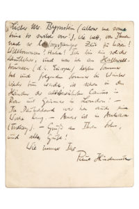 Noël 1947 et les vœux pour 1948. Hindemith évoque avec humour ses «demi-tournées» en Europe à Rome et Londres. «Lieber Mr. Bymstein (allow me some time to switch over !) wie nett, von Ihnen nach so l(oops !)anger Zeit zu hören ! Welttourneen ? Haha ! Ich bin ein solider Schullehrer, und was ich an Halbwelttourneen (d.h. Europa) letzten Sommer tat und folgenden Sommer bis Winter tun werde, ist schon in den Händen der altbewährten Camus in Rom und Geismar in London !»...