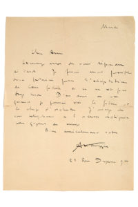 HONEGGER Arthur (1892 - 1955)L.A.S. «A. Honegger», [Paris] Mardi [1923, au cinéaste Jean EPSTEIN] ; 1 page in-4 (légères fentes). Il répond tardivement. «Je ferai mon possible avec plaisir pour l'adaptation de Cœur fi dèle si ce n'est pas trop tard. Dites-moi où et quand je pourrai voir le fi lm et le chef d'orchestre»... Le fi lm de Jean EPSTEIN (1897-1953) Cœur fi dèle sortit sur les écrans le 23 novembre 1923. Honegger ne semble pas avoir réalisé de musique pour accompagner ce fi lm mue