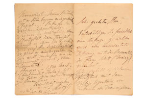 LISZT Franz (1811 - 1886)L.A.S. «F. Liszt», Weimar 20 septembre 1882, à l'éditeur Adolph FÜRSTNER ; 4 pages in-8 (fentes aux plis bien réparées) ; en allemand. Intéressante lettre sur ses paraphrases et transcriptions de Wagner. Il fait une demande à la suite d'un diff érend inattendu avec les représentants de la fi rme Schott. Quelle est la situation juridique en Allemagne de la propriété des éditeurs de fantaisies ou de transcriptions de motifs d'opéra ? En France, les éditeurs de partitions d'opéra ont un droit autocratique d'accepter ou de rejeter tout ce qui s'y rapporte, sans qu'aucun autre éditeur n'ose s'y opposer. («Wie verhält es sich in Deutschland gesetzlich, mit dem Verlags Eigenthum von Fantasien oder Transcriptionen von Opern Motiven ? Zu Frankreich haben allerdings die Verleger desOpern-Partituren autocratisches Recht über jedwedes Ding, darauf bezüglich, zu acceptiren oder abzuweisen, ohne dass ein anderer Verleger sich erlauben dürfte Einspruch zu erheben») Il ne pense pas qu'il en soit de même en Allemagne. Par exemple, Breitkopf et Härtel ont publié sa transcription de la Tannhaüser Marsch, et le Spinneslied du Fliegende Holländer. Les deux partitions sont la propriété de Meser, et maintenant celle de son correspondant. Kistner a publié l'Abend Stern (Étoile du soir) de Tannhaüser. Plus tard, à la demande de Tausig, Bahn a édité la transcription de Stillen Heerd des Meistersinger de Wagner. Récemment, Liszt a entrepris une pièce pour piano d'après Parsifal, intitulée Feierlicher Marsch zum heiligen Gral (Marche solennelle du Saint Graal), dont il envoie le manuscrit à Fürtsner. À son avis, il ne s'agit pas là d'un plagiat facile à recopier («Meines Bedünkens ist es kein bequem nachgeschrieben Plagiat»)... Il aimerait, si cela est légalement possible, sans contestation, que Fürstner édite cette Parsifal Marsch ; sinon, qu'il renvoie le manuscrit. Il en veut 1500 marks (500 thalers). C'est le cours de ses transcriptions depuis trois ans.....