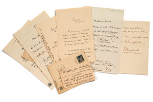 MASSENET Jules (1842 - 1912)18 L.A.S. «J. Massenet», «Massenet», initiales ou paraphe, 1895-1899, à sa fi lle ou son gendre, Juliette et Léon BESSAND ; 40 pages in-8, la plupart avec enveloppe. [22 septembre 1895], avis confi dentiel de l'annulation d'une répétition : «Calvé souff rante. - Carvalho très anxieux du retard de la première. [...] Départ pr Vienne ne peut avoir lieu ! - Attendez pour envoyer lettre ouvreuse. - Le théâtre est dans les grands ennuis»... 5 octobre 1895 : la soirée d'hier à l'Opéra impérial de Vienne a dû être aussi belle que celle de Paris. «Je pars à l'instant pour les répétitions de Werther et dans quelques jours je serai à Bruxelles»... 2 novembre 1895 : reproches d'avoir fait de la peine à Mme Massenet, en écoutant les critiques du «monde imbécile»... 9 septembre 1897 : «On travaille au théâtre & je pense tout le temps au plaisir que j'aurai à te faire voir Sapho & la Thaïs-nova. - Gailhard, hier, a réclamé à Léon, le ballet !! - Ce soir : Werther. - Dans quelques jours Manon» ... Recommandations, rendez-vous, aff aires de billets, remerciements (pour un buste, des nouvelles d'une représentation, des vœux), allusions aff ectueuses à ses petits-enfants... On joint une carte de visite autogr.