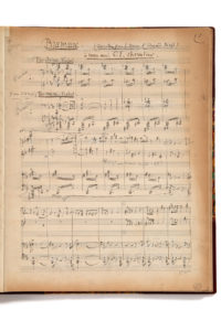 complet de cette ouverture transcrite pour piano à 4 mains. Édouard NOËL (1850-1926) a publié en 1899 un Brumaire, Scènes historiques de l'an VIII. Écrit à l'encre noire sur papier Lard-Esnault (Ed. Bellamy successeur) à 20 lignes, le manuscrit a servi pour la gravure. Il est marqué en tête : «Très animé. Violent», et est daté en fi n : «Égreville Samedi 2 sept. 99. 6 h. du matin». On relève de nombreux grattages, et une collette de 5 mesures à la page 27. La page 13 est numérotée 12 bis. La page de titre porte la dédicace «à mon ami P.E. Chevalier» (neveu et associé d'Henri Heugel). PROVENANCE Archives et souvenirs de la famille Heugel (26 mai 2011, n° 112).