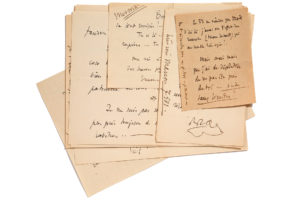 selon nos désirs)» par l'architecte Dubuisson, rue Cardinet, soit 120.000 F pour le terrain et la construction : «grâce à Esclarmonde nous pourrons décider cette aff aire»... En 1905-1907, il dit souvent son ennui : «Je m'ennuie... je m'ennuie... et je vais continuer à m'ennuyer... [...] Hier soir Manon 7.581» ; mais aussi sa tendresse : «Je pense à toi et c'est ma vie»... Avec Heugel, il négocie à l'Opéra... «Messager a dit à Heugel qu'il remettrait Thaïs EN ENTIER à la scène décors &c... pour Mlle Mary Garden»... Il parle des répétitions d'Ariane à l'Opéra.... Etc. On joint 16 L.A.S. à sa fi lle Juliette, ou à son mari Léon BESSAND.